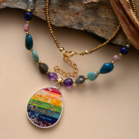 Lapis Lazuli Pendants & Rhinestone Beads Necklace