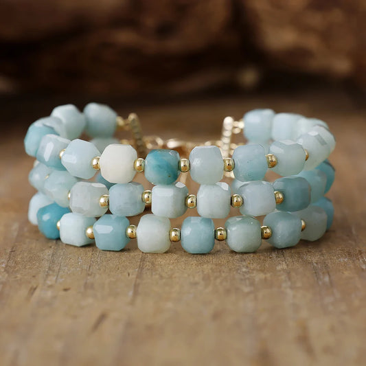 Natural Amethyst Multilayered Cuff Bracelet Healing