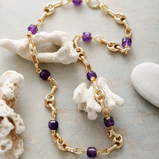 Natural Amethyst Gold Plated Chunky Chain