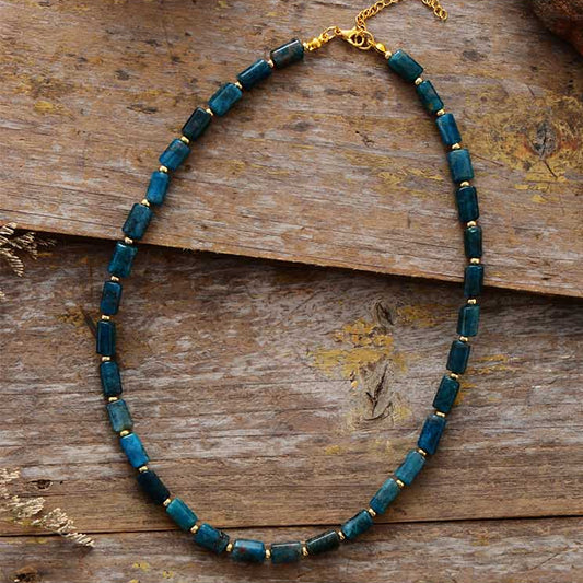 Natural Blue Apatite Tube Bead Choker Necklace