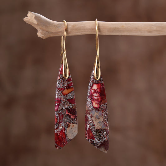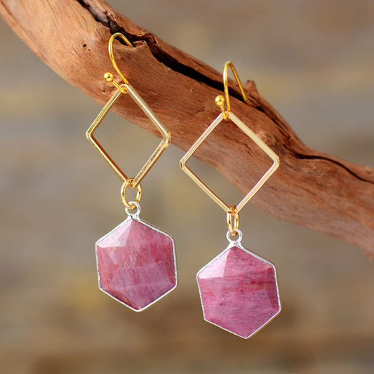 Geometric Dangle Earrings with Natural Rhodonite Stone
