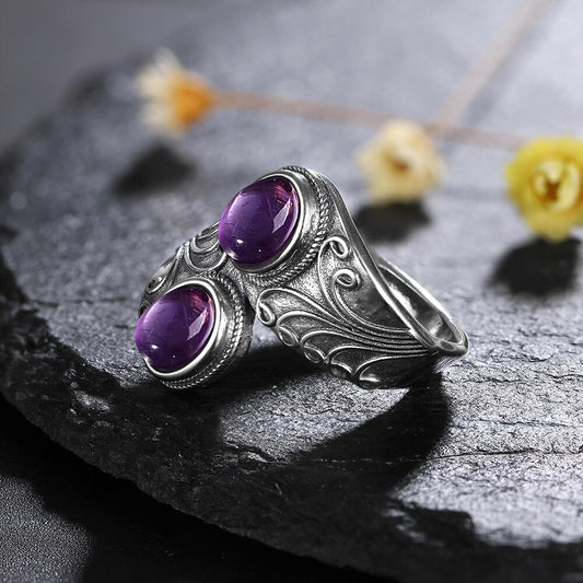 Retro Double Amethyst Silver Ring