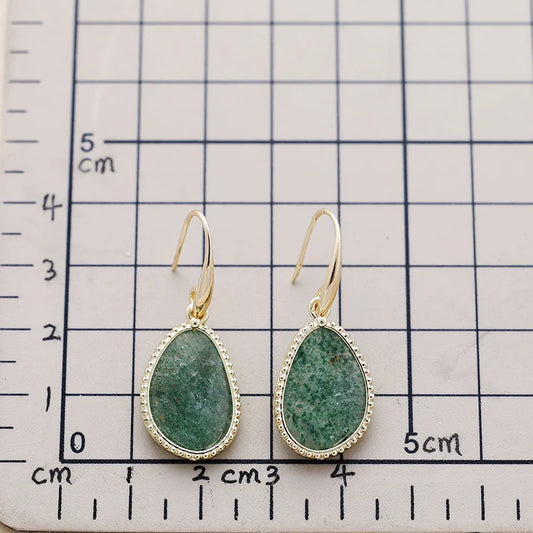 Natural Green Strawberry Quartz Gold Plated Earrings