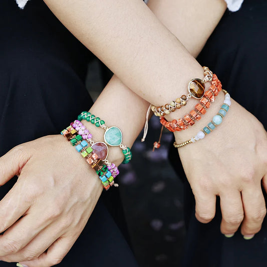 Natural Green Onyx & Amazonite Macrame Wrap Bracelet