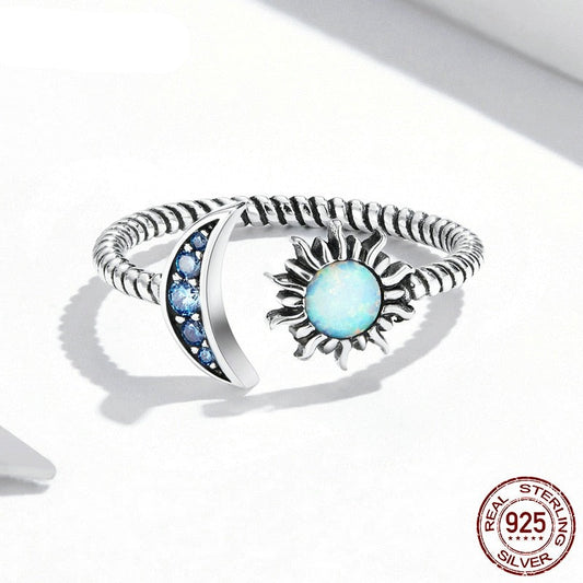 Natural Opal Sterling Silver Sun & Moon Ring