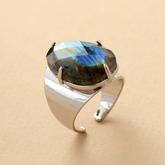 Natural Labradorite Silver Cuff Ring