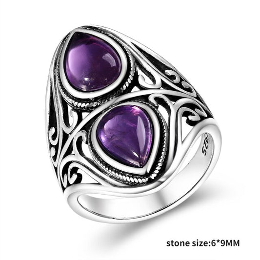 Vintage Double Amethyst Silver Ring