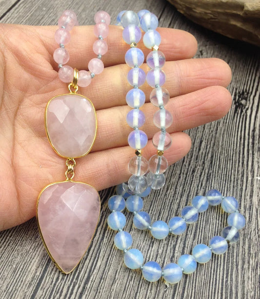 Natural Rose Quartz & Opal Necklace