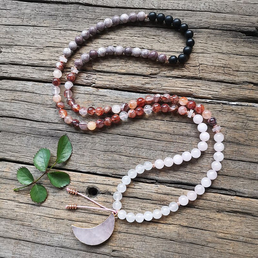 Natural Fire Quartz, Onyx, Jasper, White & Rose Quartz 108 Beads Mala Necklace / Bracelet