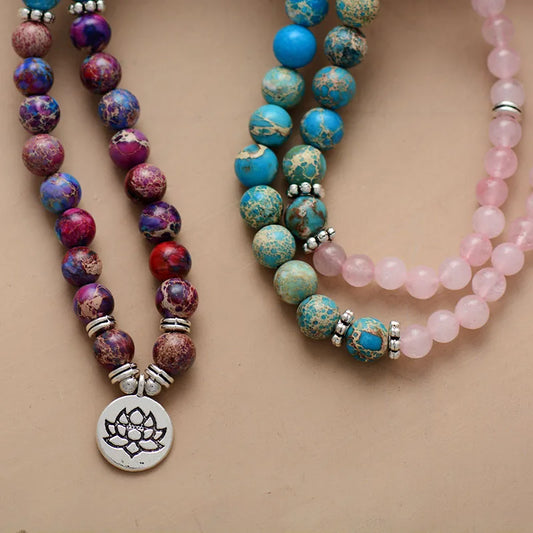 Natural Imperial Jasper & Rose Quartz 108 Beads Mala