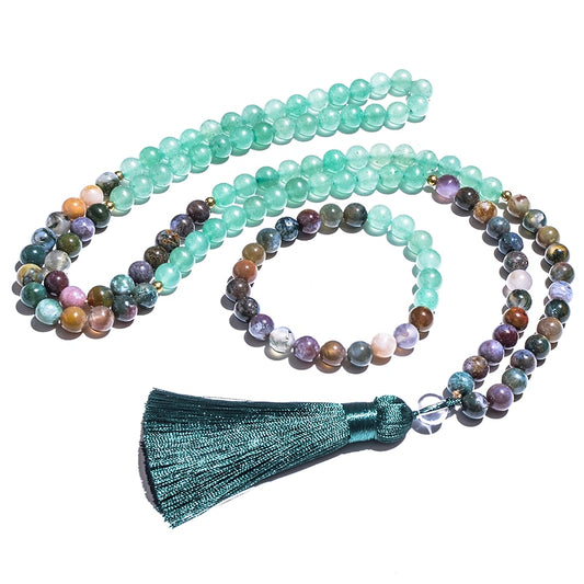 108 Natural Indian Agate & Green Aventurine Mala Beads Necklace