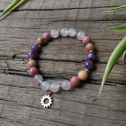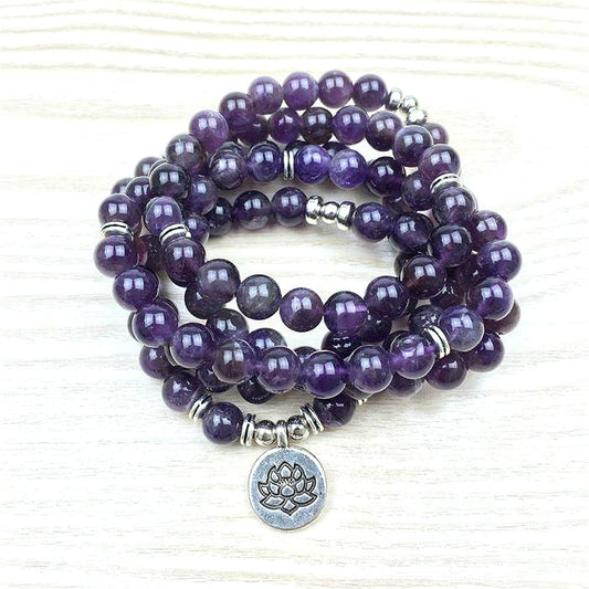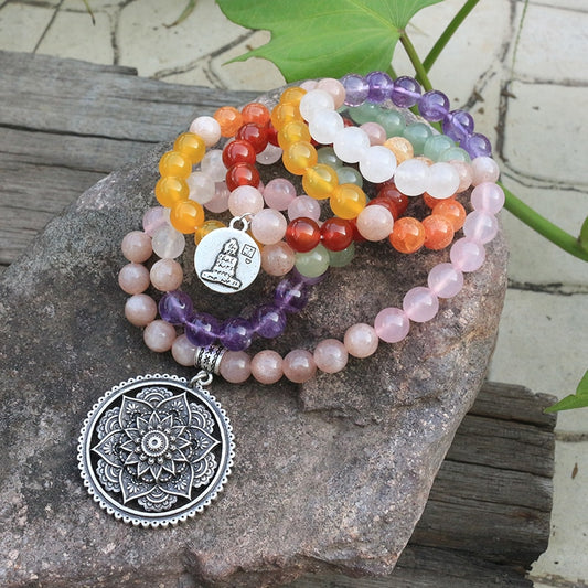 Natural Amethyst, Sunstone, Onyx, Aventurine & Rose Quartz 108 Beads Mala Necklace / Bracelet