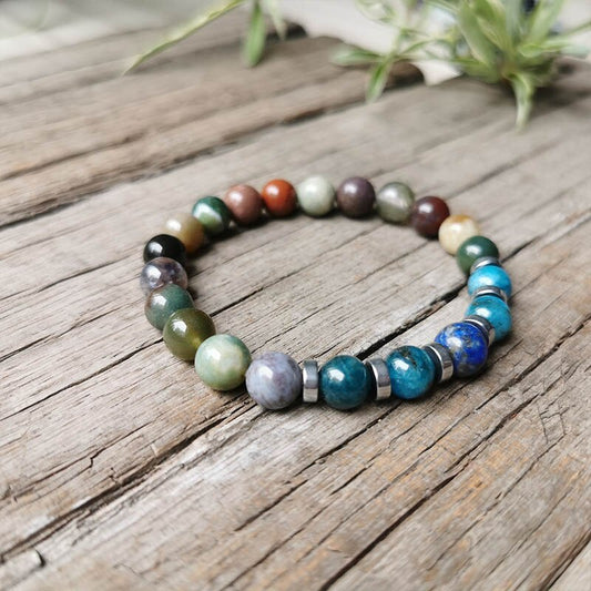 108 Natural Amethyst, Jasper, Lapis Lazuli & Agate Bead Mala Necklace