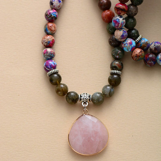 Natural Jasper & Rose Quartz 108 Beads Mala Necklace Wrap Bracelet