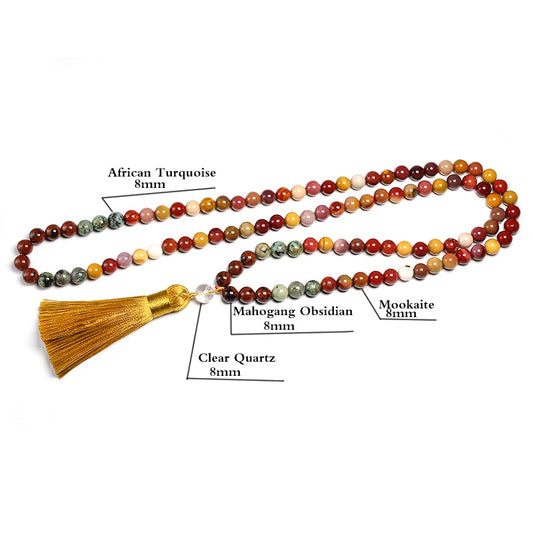108 Natural Mahogany Obsidian, Mookaite Jasper, African Turquoise Beads Mala Necklace / Bracelet