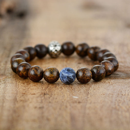 Natural Bronzite Stone and Tibetan Bead Bracelet