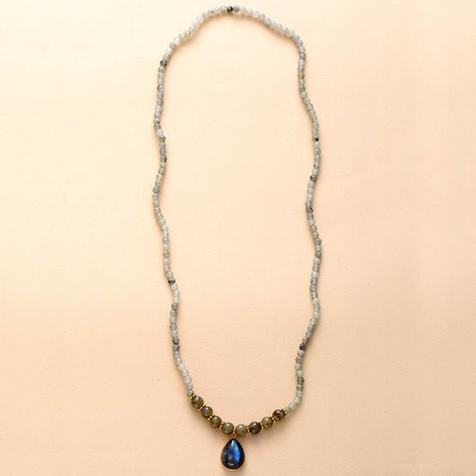 Natural Labradorite Beaded Necklace / Bracelet with Blue Labradorite Charm
