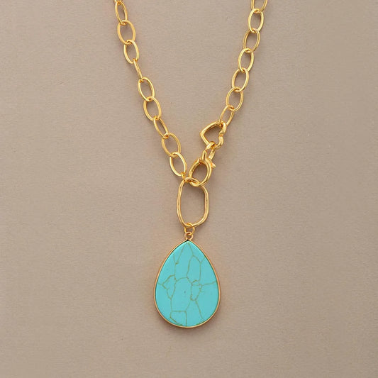Natural Turquoise Pendant Gold Plated Chunky Chain Necklace