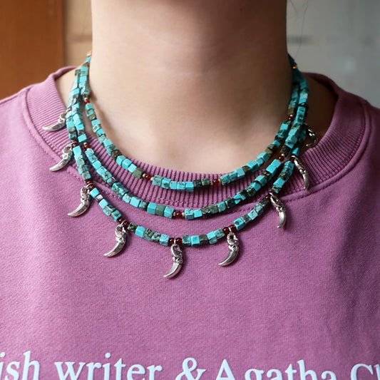 Natural Turquoise & Red Onyx Multi-Layered Choker Necklace
