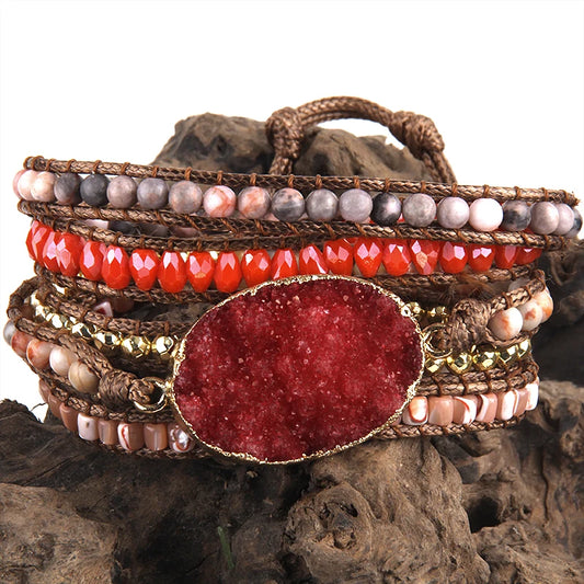 Natural Mixed Gemstones & Big Druzy Charm Wrap Bracelets