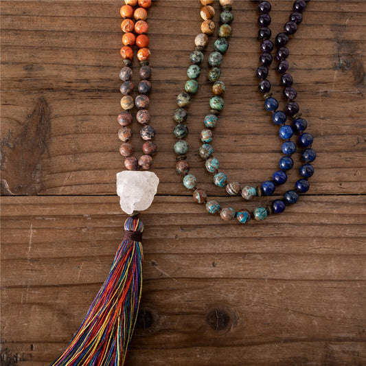 Natural 7 Chakra 108 Mala Beads Tree of Life Necklace