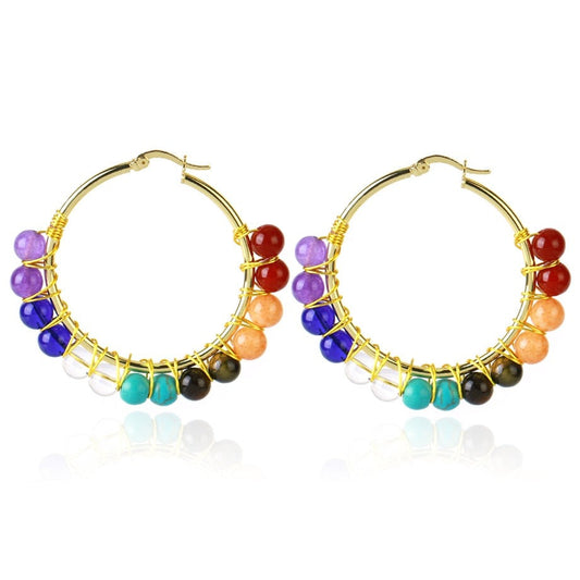 Natural 7 Chakras Stones Hoop Earrings
