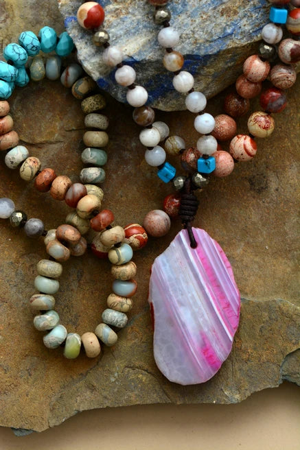 Natural Agate, Onyx, Jasper & Turquoise Necklace