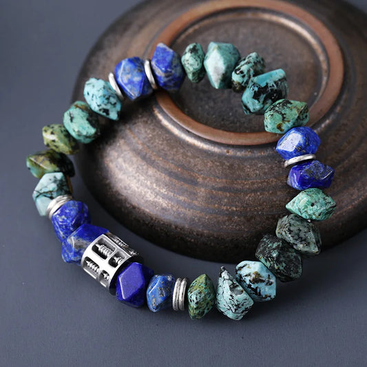 Natural Lapis Lazuli & African Turquoise Abacus Charm Bracelet