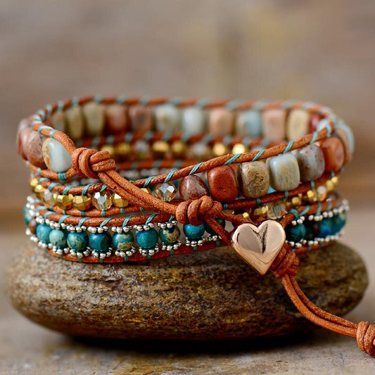 Natural Red Sediment Stone Heart Wrap Bracelet