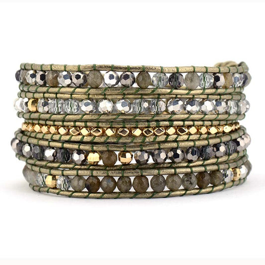 Natural Labradorite & Crystals Leather Wrap Bracelet