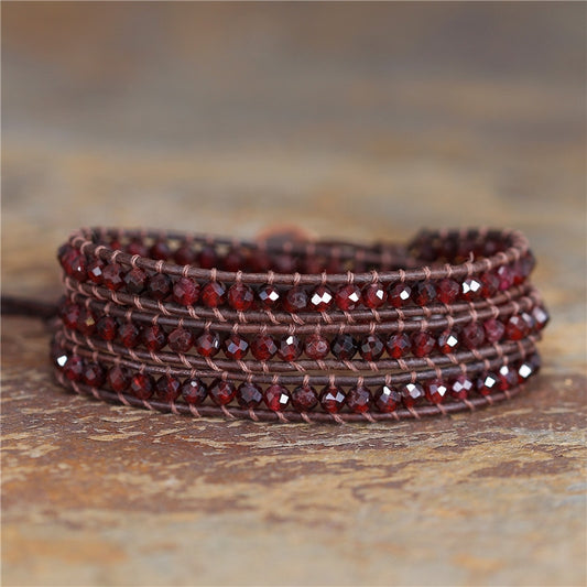 Natural Labradorite, Mixed Agate Beads, Rhodonite & Crystals Leather Wrap Bracelet