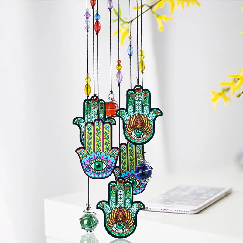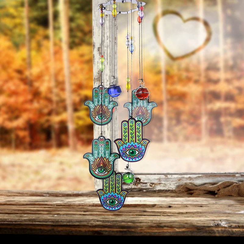 Embrace the timeless allure and profound symbolism of the Hamsa Hand with our exquisite wind chime, a harmonious blend of beauty and spiritual protection. ✨ Transform your surroundings into a sanctuary of positivity and tranquility with this captivating addition to your decor!