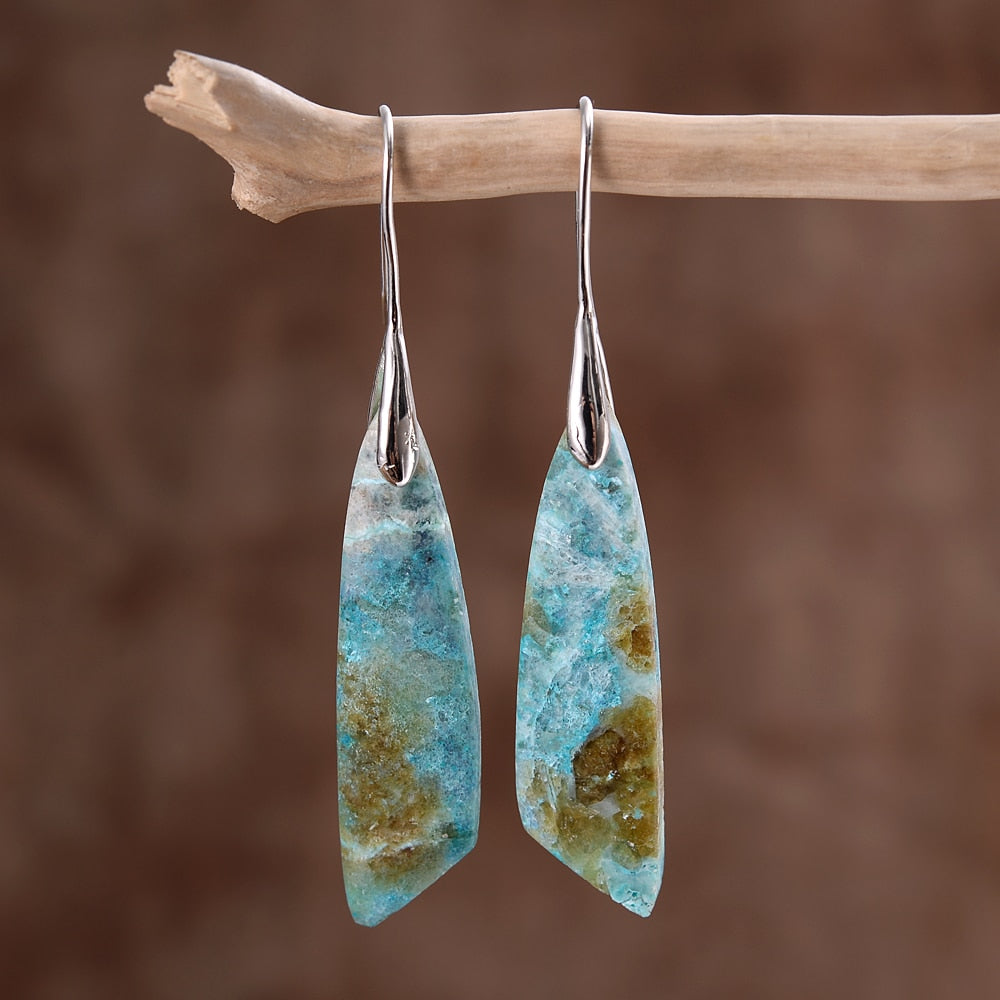 These vintage style earrings are handmade with natural Amazonite stones. Their total length is approximately 5cm.