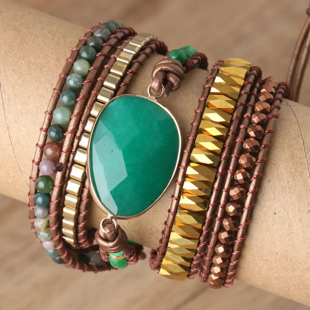 Natural Aventurine & Indian Agate Wrap Bracelet