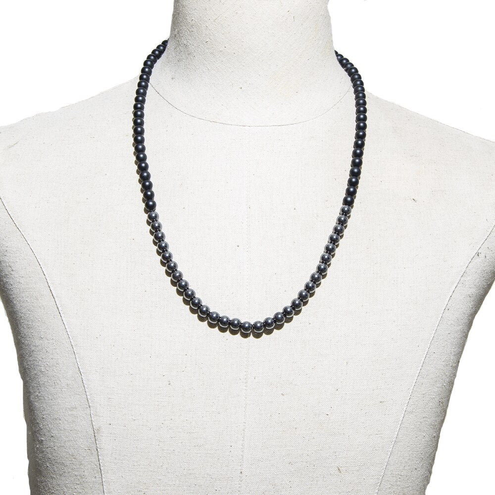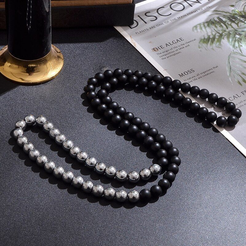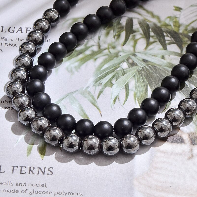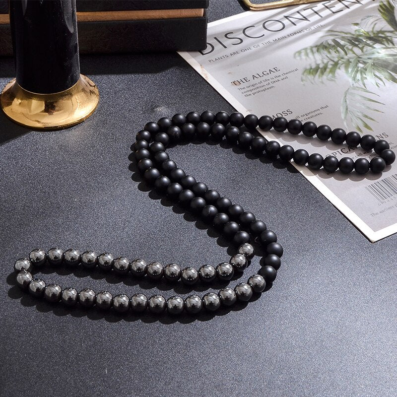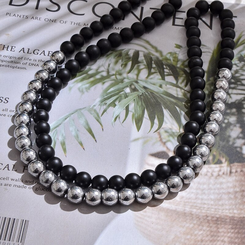 Natural Black Onyx & Hematite Beaded Necklace