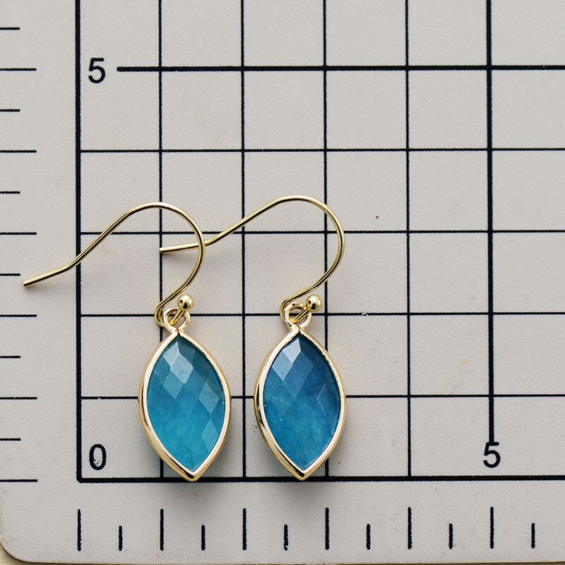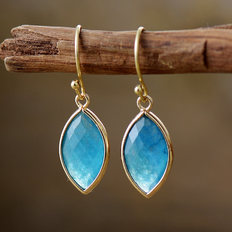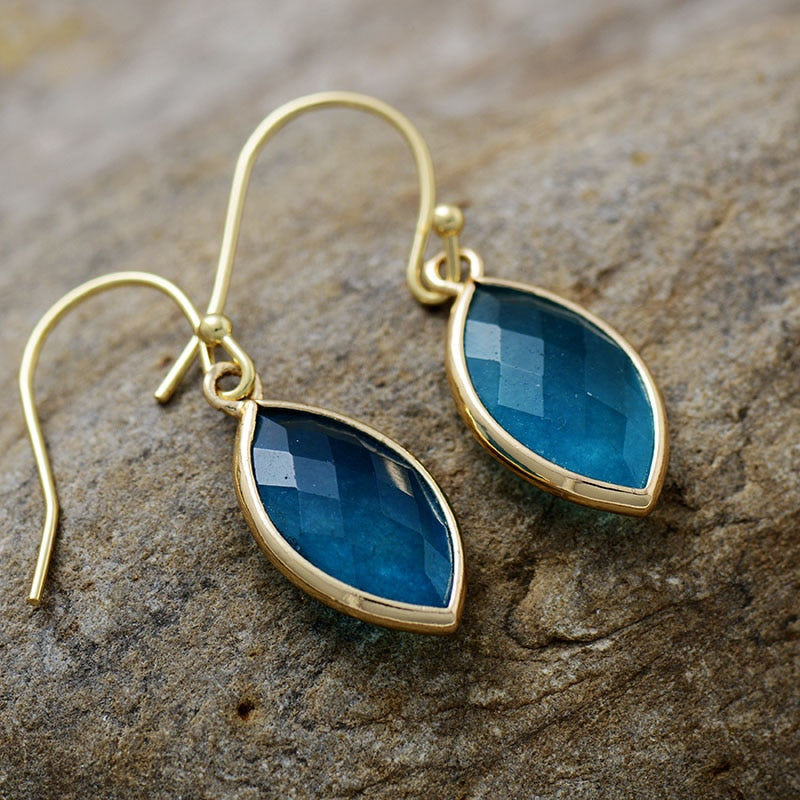 The minimalist design of these earrings makes them versatile and perfect for any occasion, whether you're dressing up for a night out or keeping it casual with a bohemian-inspired look. The eye-shaped design adds a touch of whimsy and intrigue to your outfit, while the blue quartz stones add a pop of color and natural beauty.