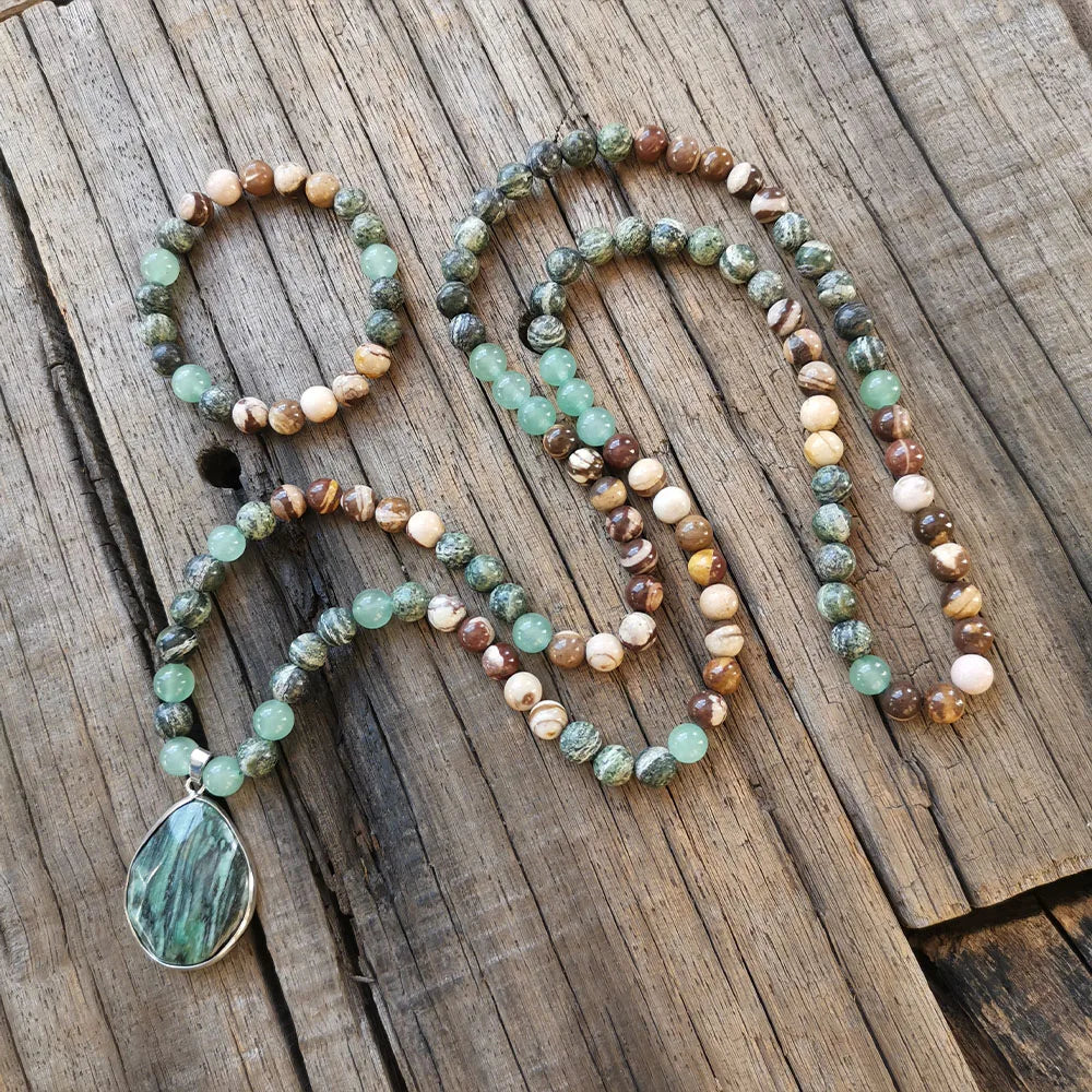 Embrace harmony and strength with this handmade jewelry set, featuring a stunning combination of Natural Green and Red Zebra Jasper and Green Aventurine. Whether you select the necklace, bracelet, or the complete set, each piece radiates grounding energy and spiritual balance.