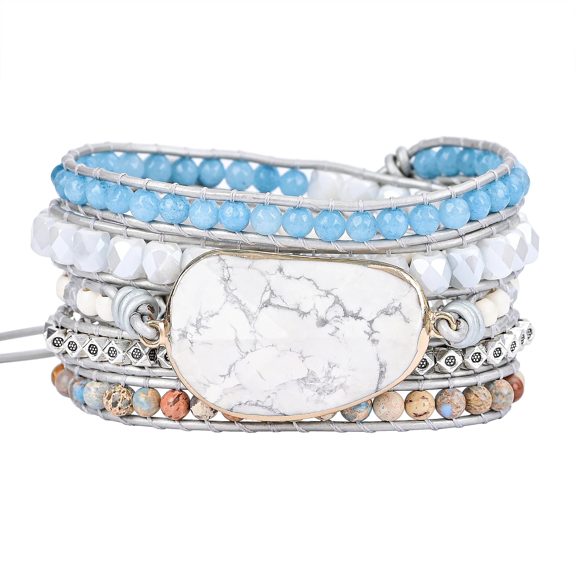 Natural Imperial Jasper, Malay Jade & Jade Vegan Leather Wrap Bracelet