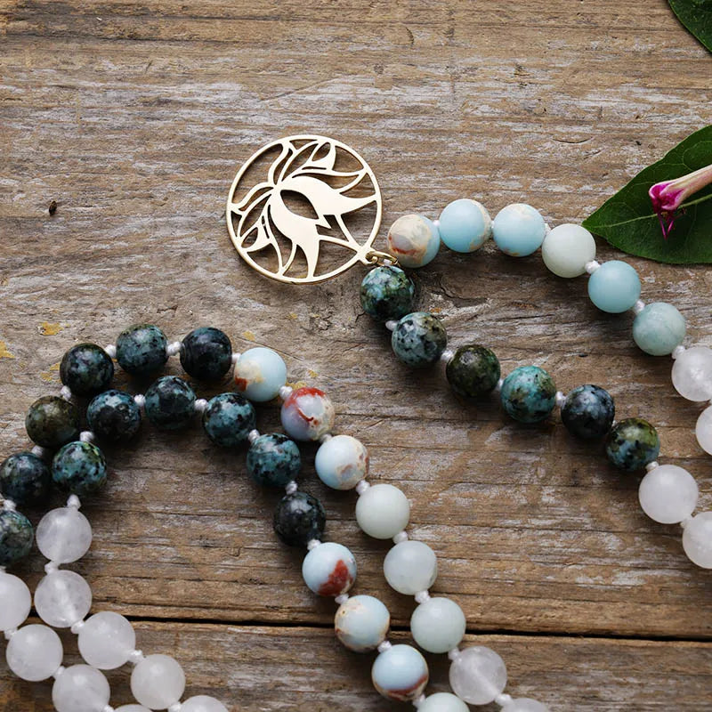 Natural Jasper, Rose Quartz & Amazonite 108 Beads Mala