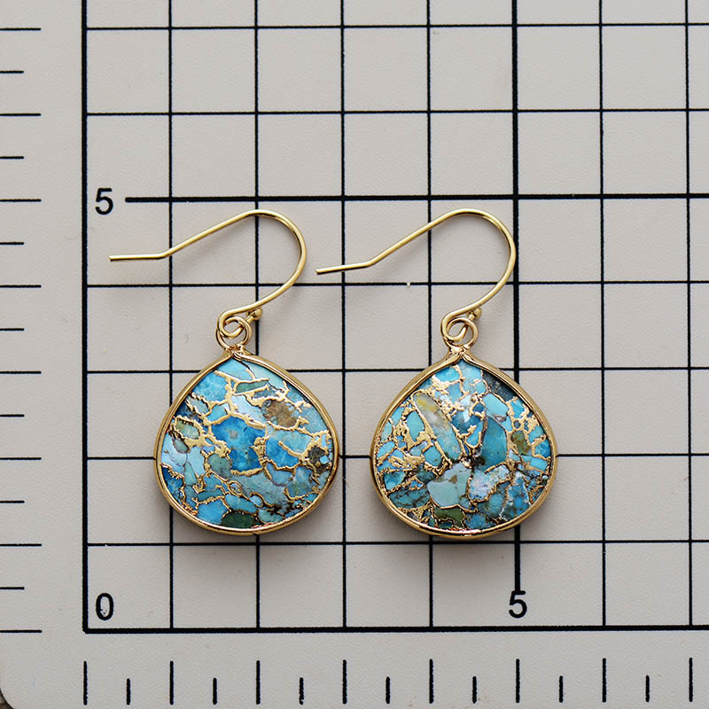 These glamorous and elegant earrings are beautifully handmade with natural Turquoise stones. Their total length is approximately 4cm.